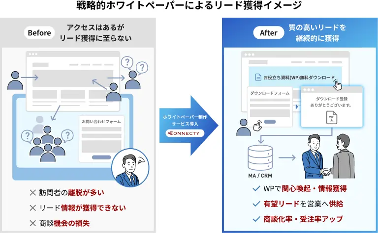 コネクティの戦略的ホワイトペーパー制作サービスで解決します!